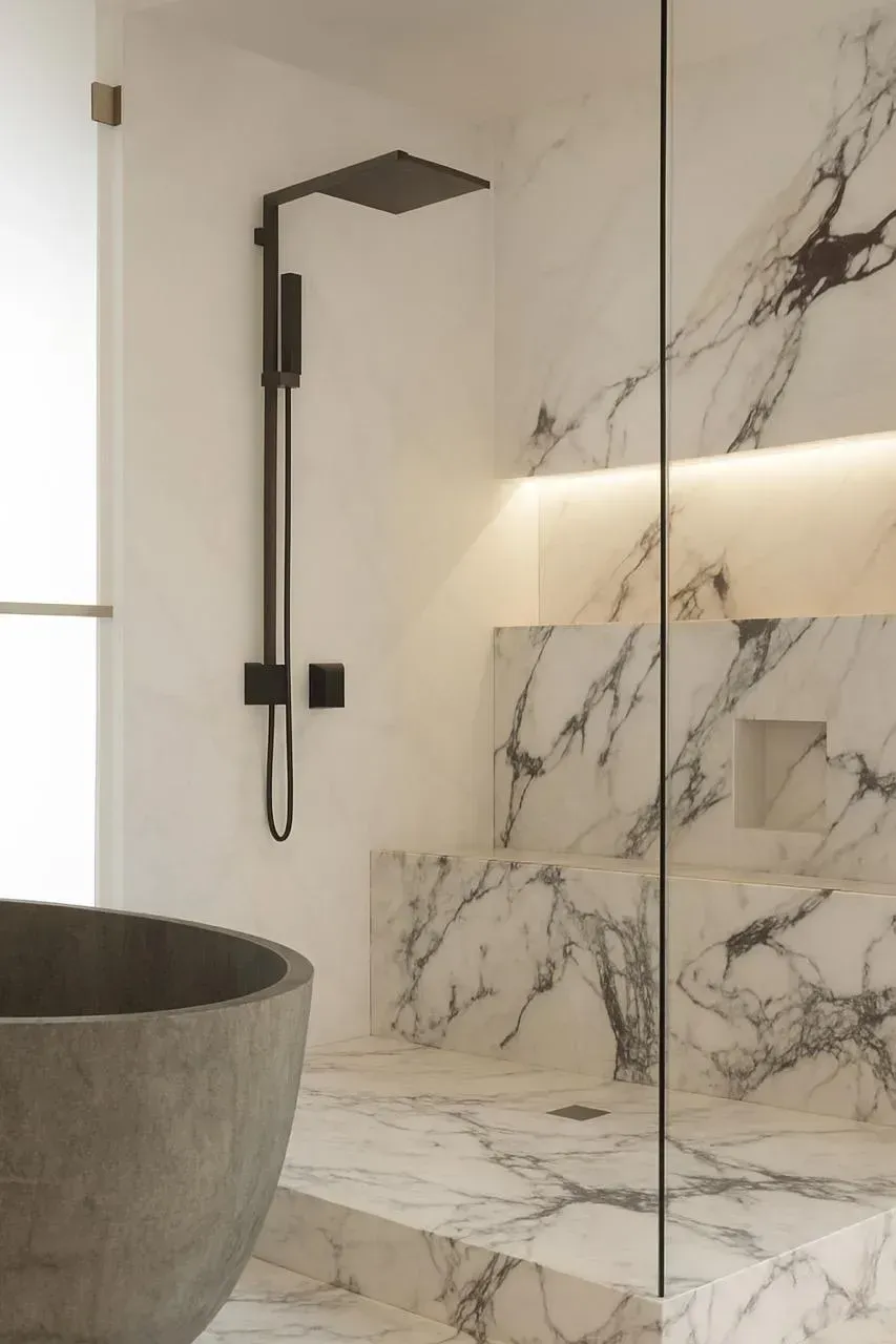Walk-In Showers · Freestanding Tubs · Heated Floors · Tile · Vanities